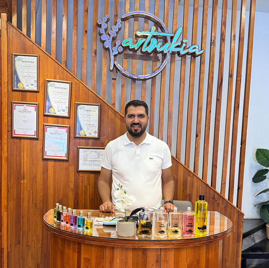 Uzun yıllar kozmetik fabrikalarında çalıştıktan sonra kendi markalarını oluşturan 5 kardeş tarafından kurulan ZR Kozmetik, Artoukia markasıyla büyümesine devam ediyor. Eski Mardin Bölgesi’nde açtığı 3 mağazanın ardından e-ticaret yatırımlarıyla yurt içi pazarındaki satış hacmini büyüten firma, yönünü ihracata döndü. Özellikle yerel kokulardan oluşturduğu tanecikli kolonya ürünlerinde ciddi satış hacmi yakalayan firma, Avrupa ülkelerine yönelik ihracatını sürdürüyor. Doğal kozmetik ürünlerdeki portföylerinin hızla geliştiğini bu nedenle üretimle eş zamanlı olarak pazarlama kapasitelerini geliştirecek projelere ağırlık verdiklerini ifade eden ZR Kozmetik Genel Müdürü Mehmet Şerif Arpa, kolonyadaki çeşit sayılarının 58’e yükseldiğini belirtti. Tanecikli ürünlerinin lokomotif ürünleri olduğunu ifade eden Mehmet Şerif Arpa, “Yeni ürün çalışmalarımız kapsamında hazırladığımız yeni kokuların içerisine ham madde olarak kullandığımız kehribar taşı, akik taşı, papatya taneleri ve incir tanelerini de ekledik. Bu proses sayesinde kullanıcılarımız için yüksek kaliteli yeni bir ürün ortaya çıktı. Tanecikli ürünlerimiz sayesinde satış hacmimiz hızla yükseldi ve ihracat talepleri almaya başladık” dedi.