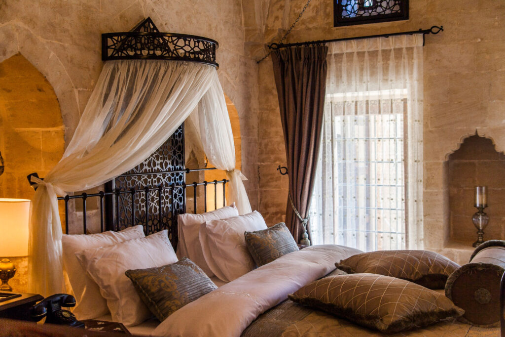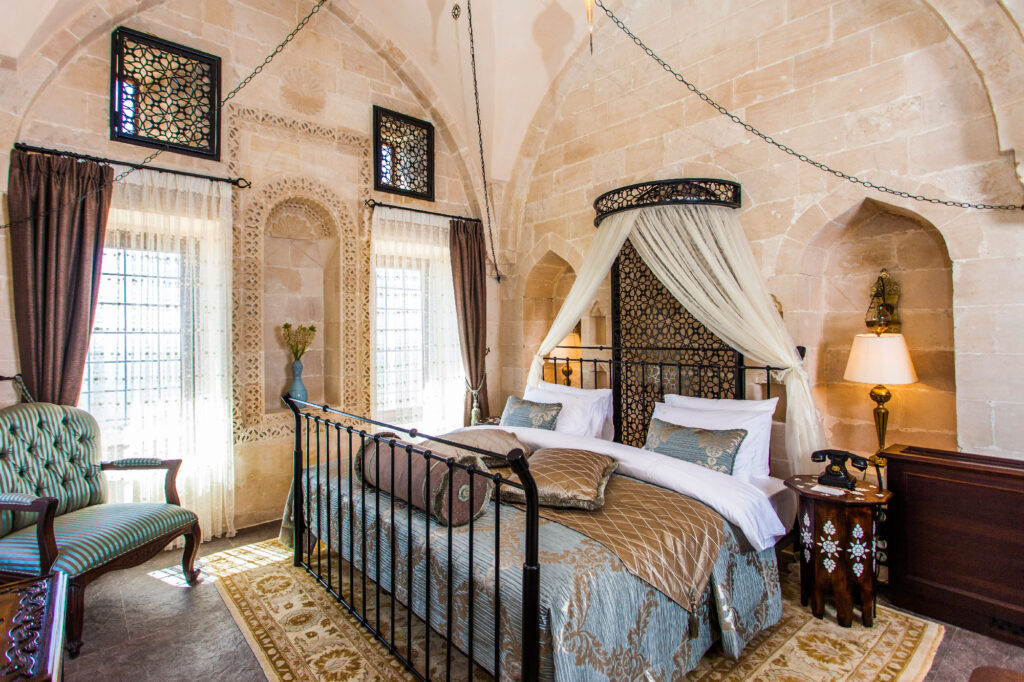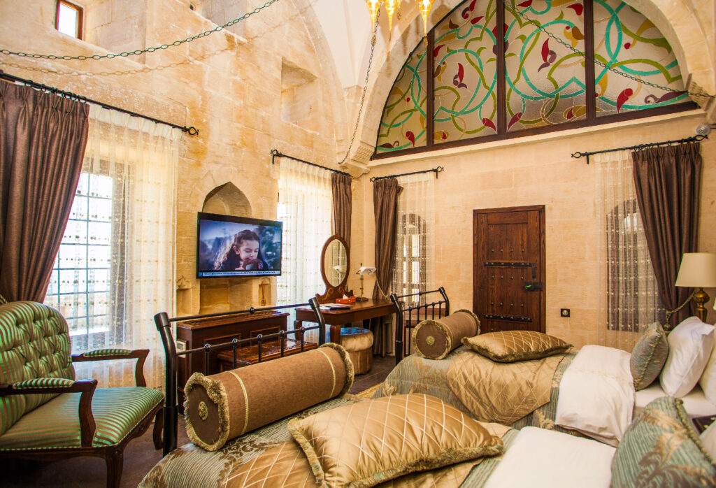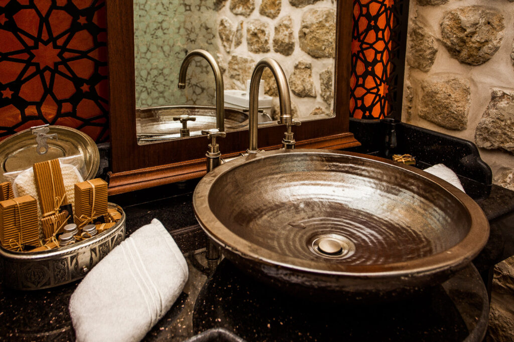 Restorasyon süreci devam ederken odalardaki karyolaları annemin ve babamın kullandıklarının benzerleri olarak ürettik. Annemin çeyiz sandığının bir benzerini yaptık ve tüm odalara koyduk. Lavaboları bakırdan ürettik, metal süslemelerde Selçuklu motiflerini kullandık. Ahşapta ise bölgenin kültürünü yansıtmaya çalıştık. Aydınlatma çalışmalarını Philips ile hayata geçirdik; konağımız için üç ayrı proje hazırladılar ve bugün kullanılan projeyi Philips mühendisleri gerçekleştirdi.